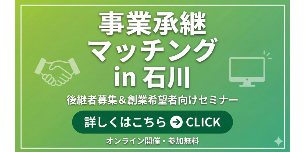【会員登壇】「オープンネーム後継者募集イベント 事業承継マッチング in 石川」開催のお知らせ