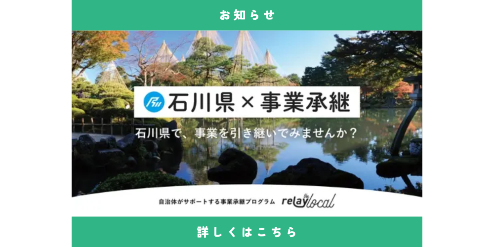 石川県が事業承継特設サイト「relay the local 石川県」を公開