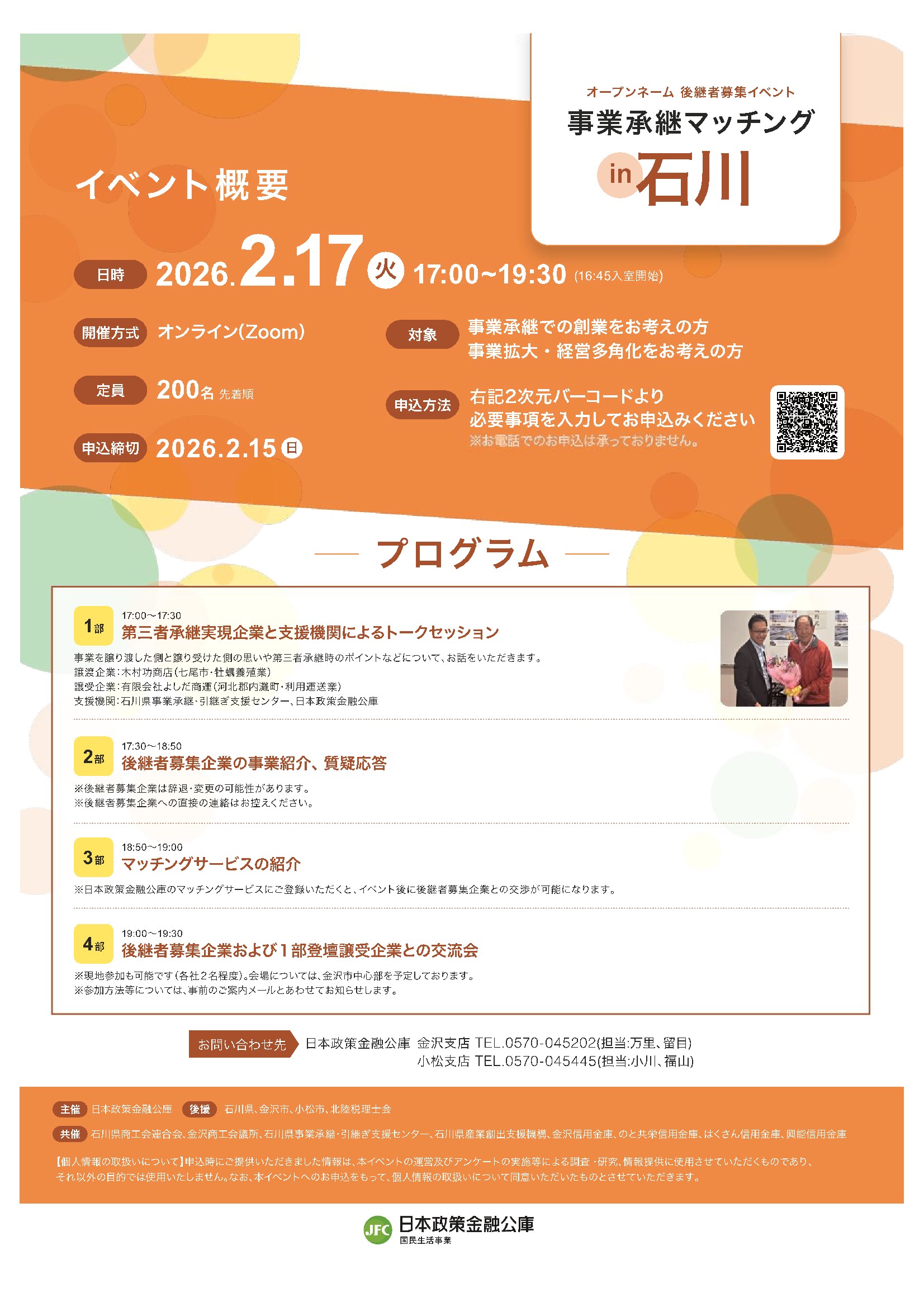 【日本政策金融公庫】事業承継マッチングin石川のご案内:2/17(火)
