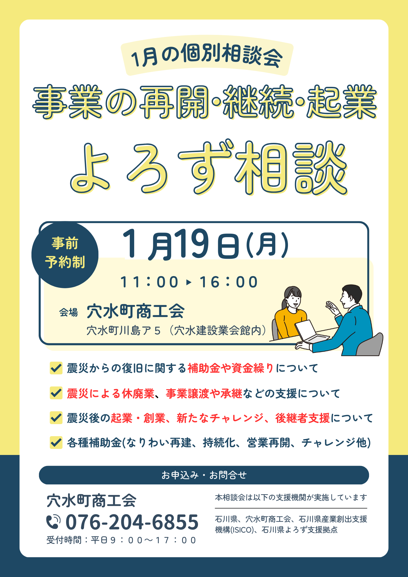 1月の個別相談会「事業の再開・継続・起業 よろず相談」【予約制】