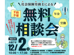 【石川県商工会連合会】 「社会保険労務士による無料相談会」周知について