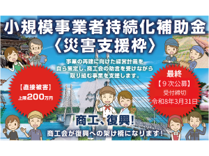 【石川県商工会連合会】 小規模事業者持続化補助金【災害支援枠(令和6年能登半島地震等)】第9次公募の公募要領(暫定版)が公開されました